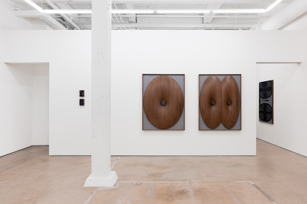 For Dibbler Stick, Cook approaches her subject via robust world-building. Central to the presentation is a large cinematic painting, The wonderful company, Pittsburg, CA, 94565, that reveals an eerily beautiful cascade of indistinct crops—hypnotic, oppressive, and void of humans or habitation—that stretches as far as the eye can see. In dialogue with the painting are sculptural works made from solid walnut that resemble farm implements or tools, but are rendered as smooth, aesthetic abstractions that reference mid-century design. Toggling between the past and present, the familiar and the unknown, beauty and dread, absurd and banal, Cook’s works call to mind Americana and craft traditions, as well as the polymorphous sculptures of H.C. Westermann. Other smaller paintings incorporate the aesthetic of narrative modalities like film and novels, drawing attention to the ways in which individual and collective memory collide to shape history and geography, and ultimately, the present.