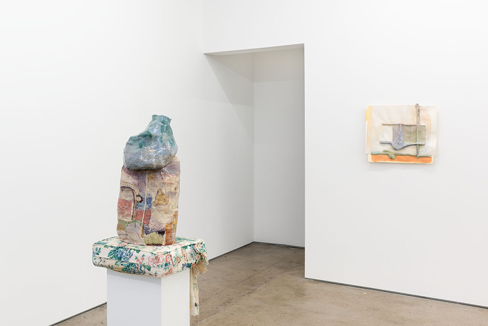 For No Relief, Hutchins presents new mixed media works that recast the quotidian in thoughtful and evocative ways. Ceramic sculptures gesture towards recognizability—a head, a torso, or arm. The forms splay, lean, and flaunt their presence into the surrounding space, interacting with and implicating the viewer, while gestural glazes in earthy pinks, greens and browns build emotional intensity. At times they resemble broken ancient statuary, but instead of conjuring visions of an idealized past, Hutchins’ bodies—scarred, broken, and indented with the maker’s fingers—are situated in the present and speak rather to fragility, pathos, and imperfection. Hutchins’ approach to art-making allows for the sculptures to extend outward from objecthood and art history into other systems that organize our lives and thinking, along the way challenging hierarchies of form, materials, value and aesthetics.