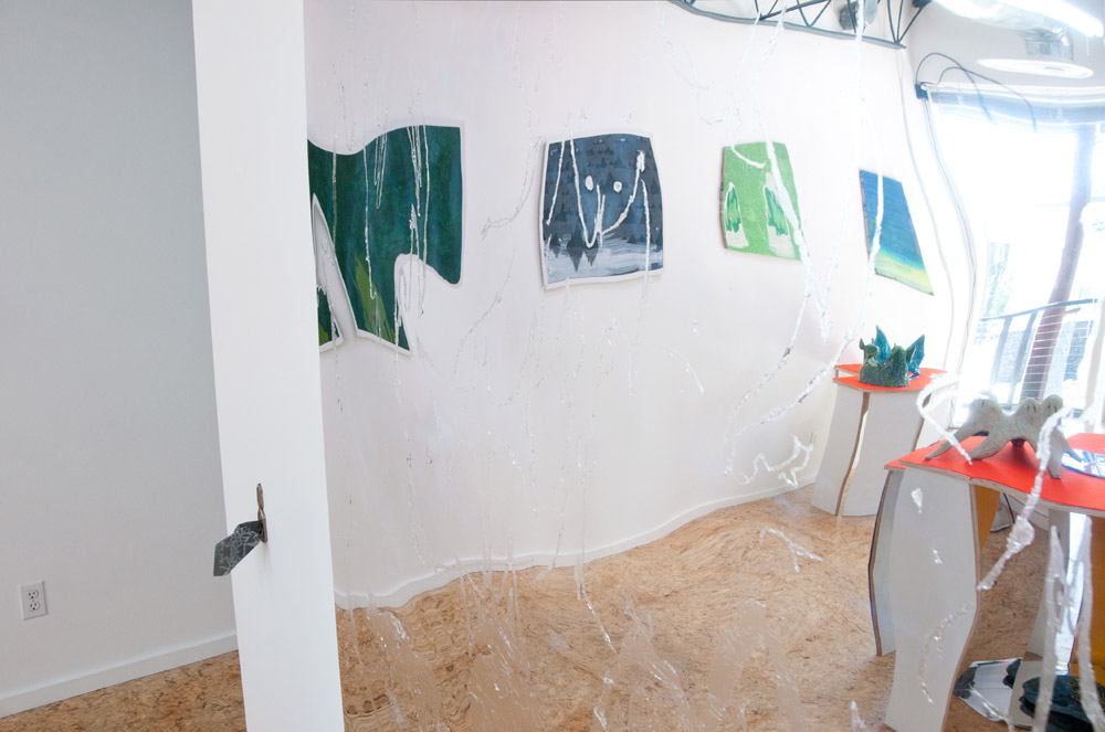 Adams and Ollman presents Moons of a Dewdrop, a collaborative installation by Paul Swenbeck and Joy Feasley, on view from June 7 through July 20, 2013. With shared interests in geology, magic, science fiction, and fringe belief systems, Swenbeck and Feasley experiment across a variety of media. Together the pair creates an otherworldly experience that is rooted in art history as well as craft and folk traditions.