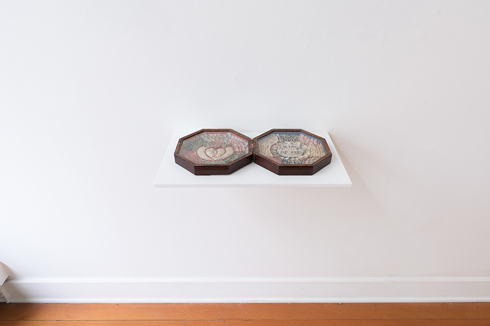 A 19th century sailor's valentine, brought home from a sailor’s voyage at sea, will be on view in the exhibition. Composed of a variety of seashells arranged in a radiating pattern, the keepsake, made by an Anonymous Artist and likely sold to a sailor at the height of the Victorian Age in Barbados, implores the beholder to “Think of Me.”